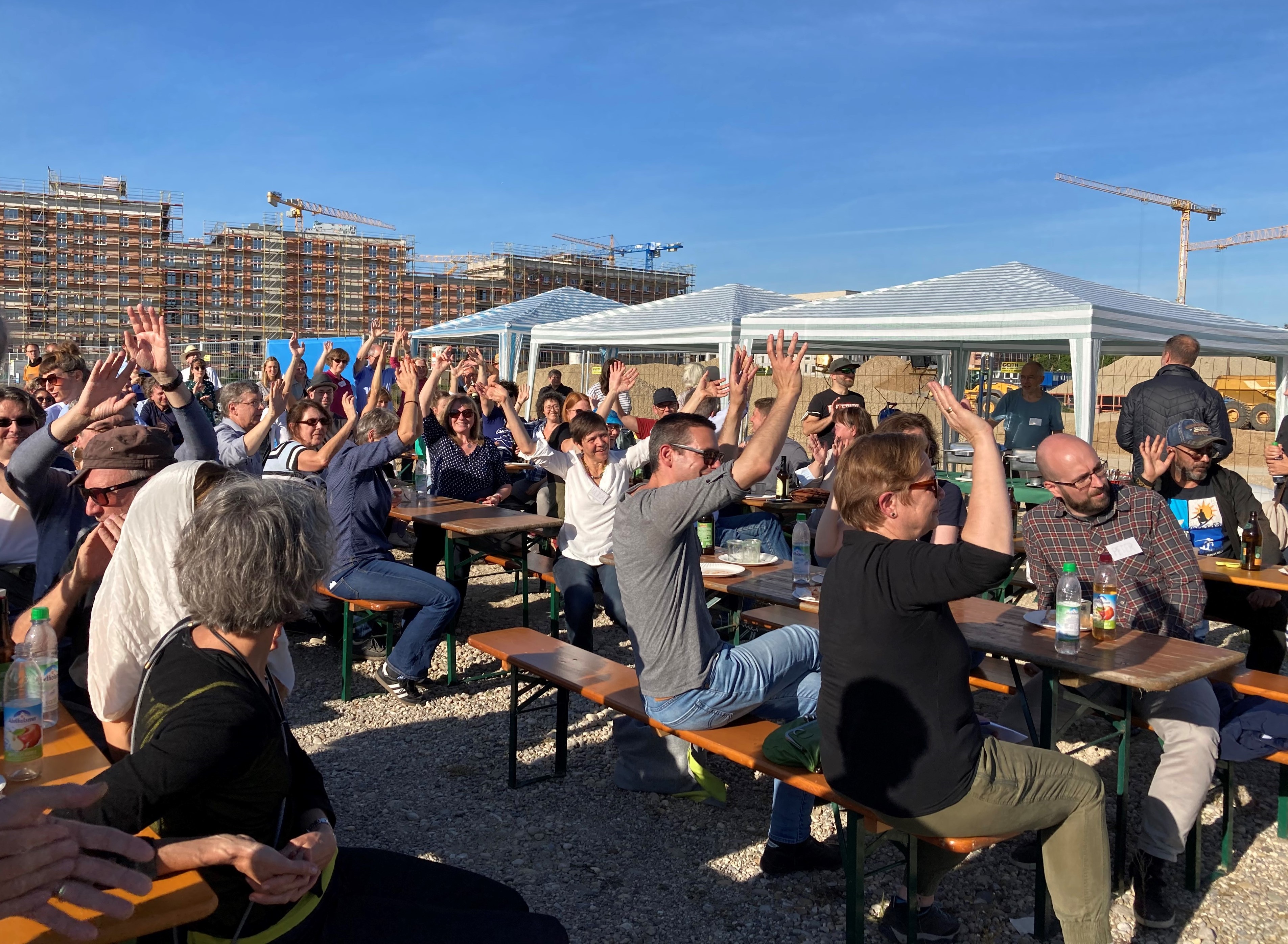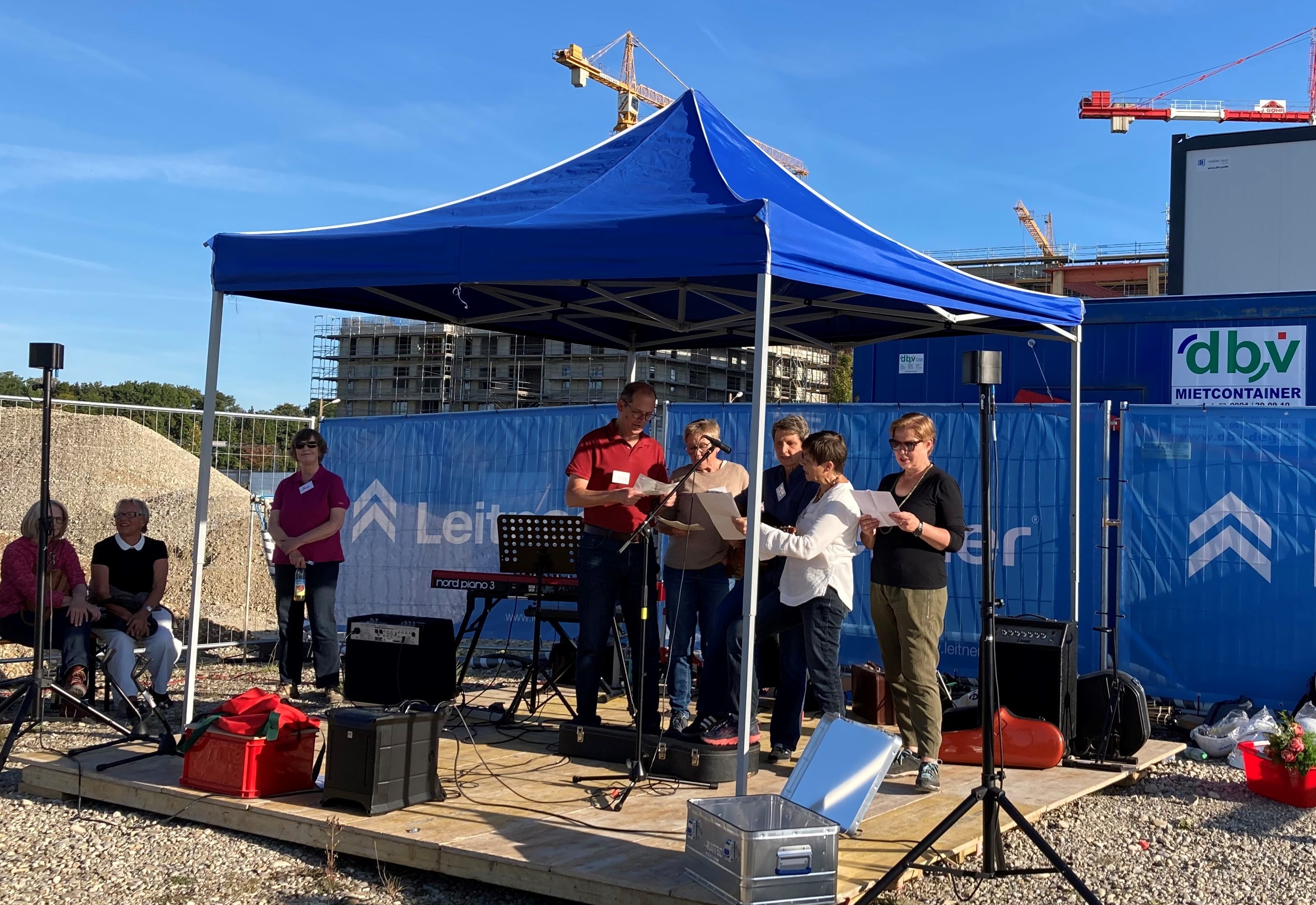 Bestes Wetter, beste Stimmung: bei strahlendem Sonnenschein wurde Anfang Oktober der Grundstein für das Projekt wagnisWEST in Freiham gelegt.