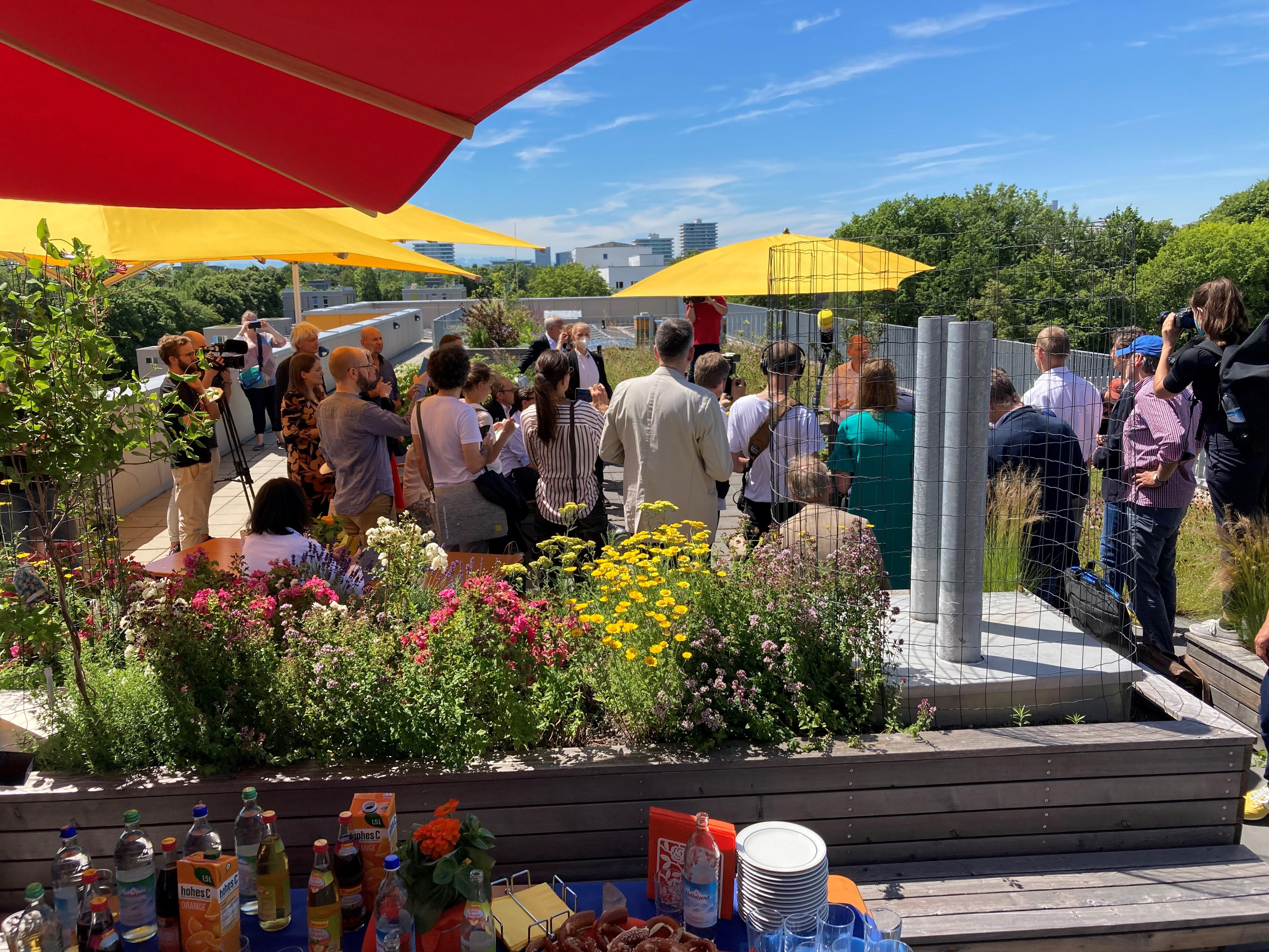 Was Genossenschaften für die Entwicklung von Neubauquartieren tun, darüber machte sich SPD-Kanzlerkandidat Olaf Scholz am Dienstag im Prinz-Eugen-Park ein Bild. Dort besuchte er mehrere genossenschaftliche Wohnanlagen und traf auch VertreterInnen von Münchner Genossenschaften. Beim abschließenden Meeting auf der Dachterrasse von wagnisPARK mit hochsommerlichen Temperaturen betonte der Bundesfinanzminister die wichtige Rolle der Wohnungsbaugenossenschaften, für sicheren Wohnraum gerade in Ballungsräumen zu sorgen.