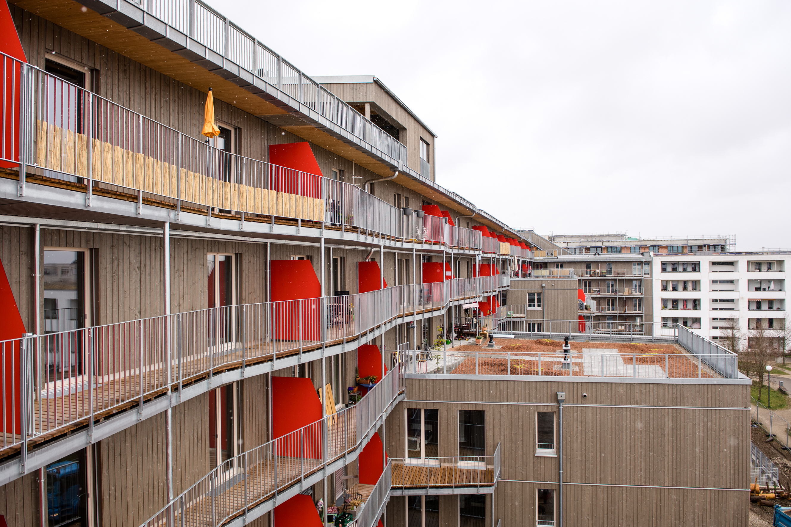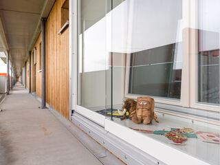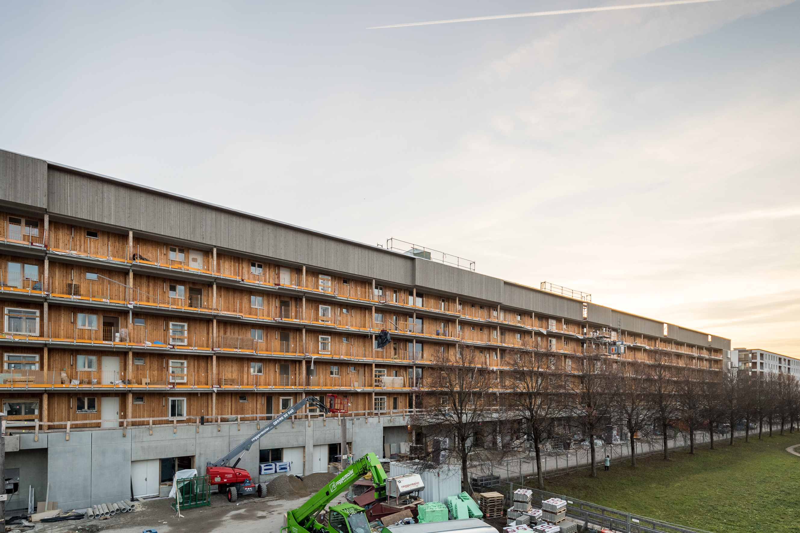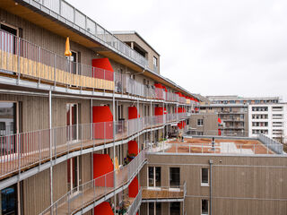 Hier sind die Wege kurz, denn die Anbindung an den ÖPNV ist optimal, die U-Bahn-Station Messestadt-Ost liegt direkt vor der Haustür und sowohl der Riemer Park samt Badesee als auch das neue Stadtteilzentrum sind ganz nah. Durch die gemeinsame Entwicklung mit WOGENO und KOOGRO haben die Bewohner*innen eine besonders vielseitige Infrastruktur zur Verfügung mit gemeinschaftlichen und gewerblichen Angeboten wie Dachgarten, Repaircafé, Veranstaltungs- und Gemeinschaftsräumen, Musikraum, Mobilitätszentrale und Ballettschule. Auch unser drittes Projekt wagnis3 an der Heinrich-Böll-Straße ist nur wenige hundert Meter entfernt.