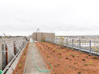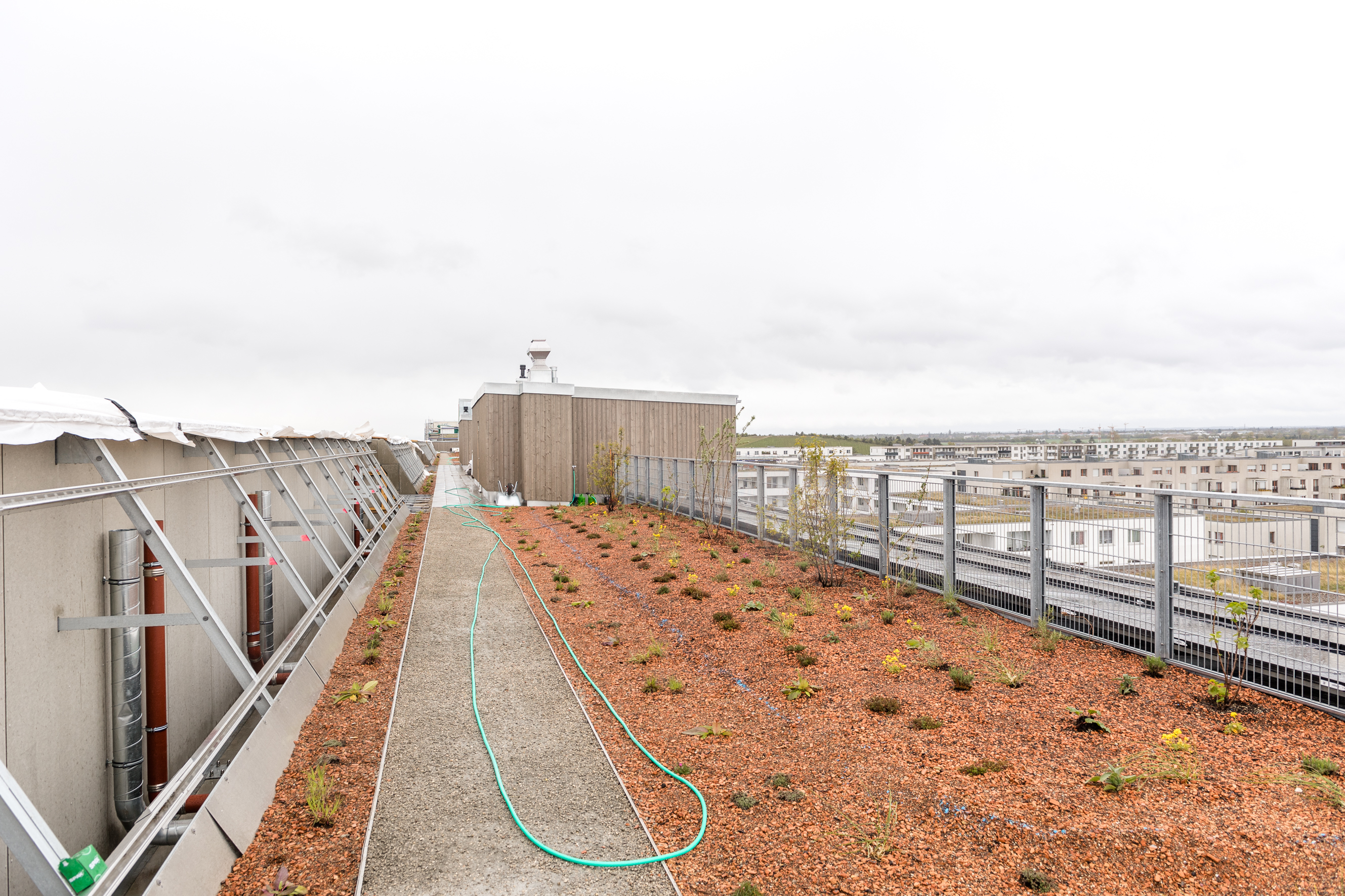 - Gemeinschaftliche Dachterrasse mit Alpenblick, Beeten, Gemeinschaftsraum und Sommerküche